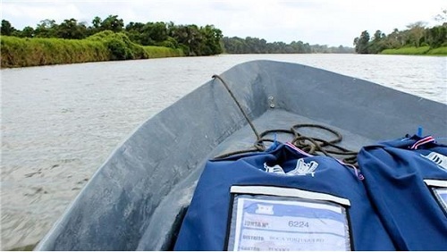 Pie de foto: Material electoral es transportado en lacha para llegar a su destino.