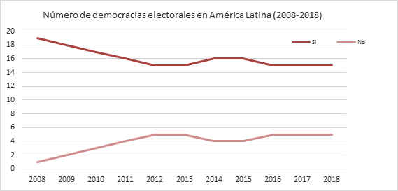 Figura 5. Evolución de las democracias electorales en América Latina (2008-2018). Elaborado con datos de Freedom House.